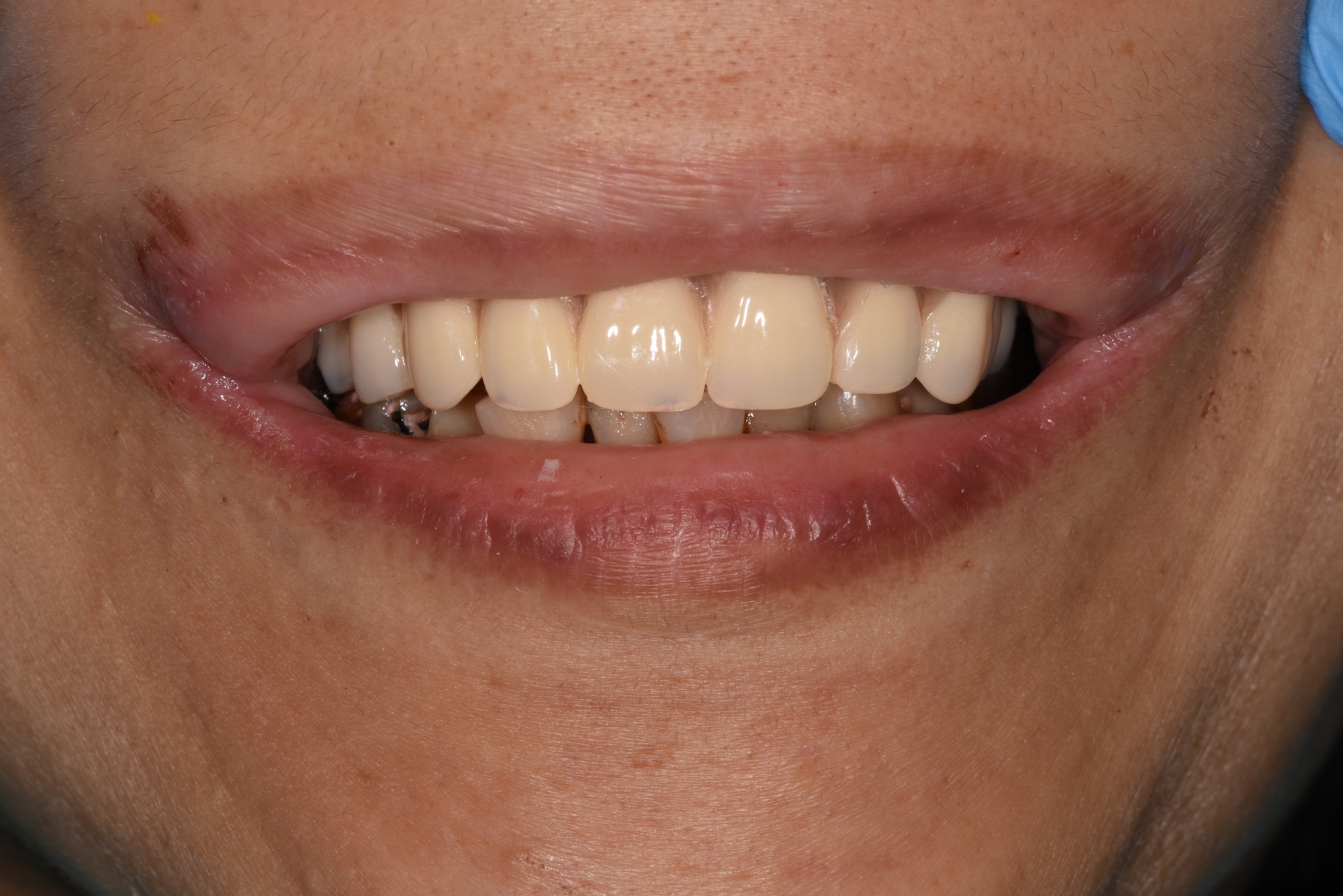 病友長期假牙有問題,某天突然掉落斷裂,經過一日全口重建固定式ALL On 4 假牙,同事朋友都沒發現她牙齒不見,只覺得隔天變得更美了