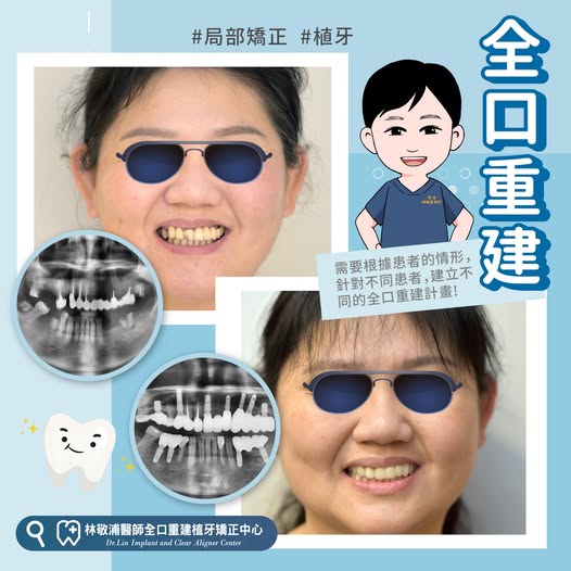全口重建|局部矯正+假牙+植牙